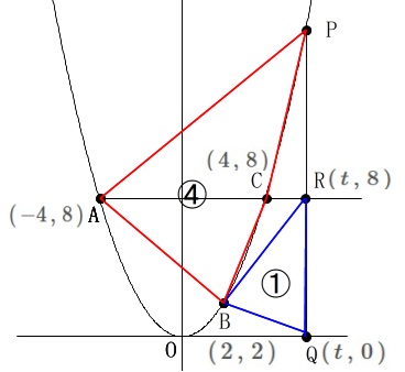 (①の相似を利用したいので\(\,\mathrm{RS}\,\)に対する辺の長さ)