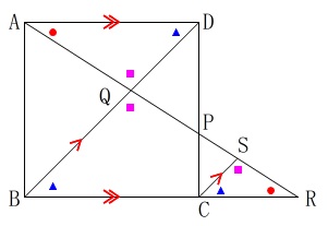 \(\hspace{10pt}\mathrm{\color{red}{△AQD}}\)∽\(\mathrm{\color{red}{△RQB}}\)です。
