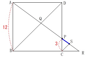 三平方の定理から\(\,\mathrm{AR=20}\,,\,\mathrm{PR=5}\)
