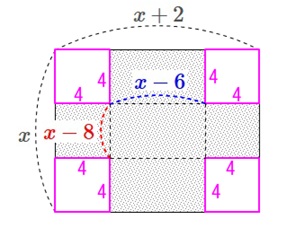 \(\hspace{4pt}\mathrm{AP=BQ}=\color{blue}{x}\,\)とします。