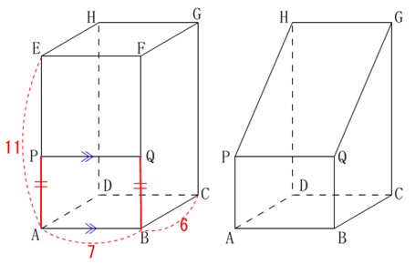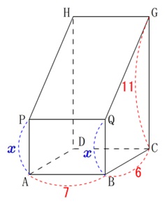 取り除いた部分の体積は\(\,\mathrm{PE}=11-x\,\)となることから