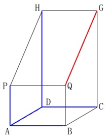 図2の辺\(\,\mathrm{GQ}\,\)とねじれの位置にある辺の数です。