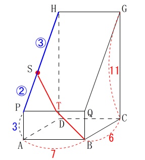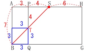 \(\,\mathrm{ST+TB}\,\)が平面上で1直線になれば最短です。