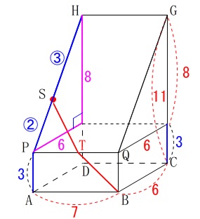 ここで\(\,\mathrm{PH}\,\)の長さは三平方の定理から求まります。