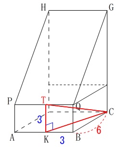 \(\hspace{4pt}\mathrm{CK}=3\sqrt{5}\,,\,\mathrm{TK}=3\,\)が直角をはさむ2辺なので