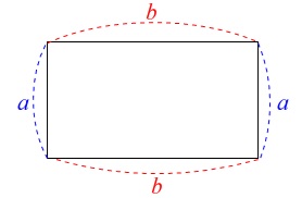 周の長さは\(\,(\,\color{blue}{a}+\color{red}{b}\,)\times 2\,\)です。