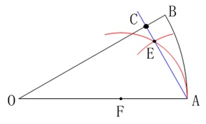 3辺が等しくなる様に同じ半径\(\,\mathrm{AF}\,\)で円を描き、