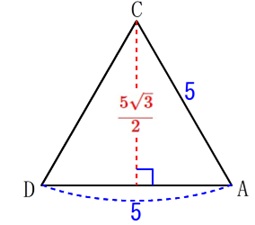 正三角形\(\,\mathrm{ACD}\,\)の面積を求めるには、1辺の長さがわかればよい。