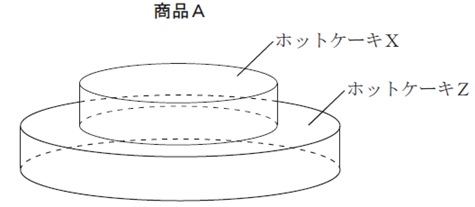 商品\(\,\mathrm{A}\,\)はホットケーキ\(\,\mathrm{X}\,\)の下に、